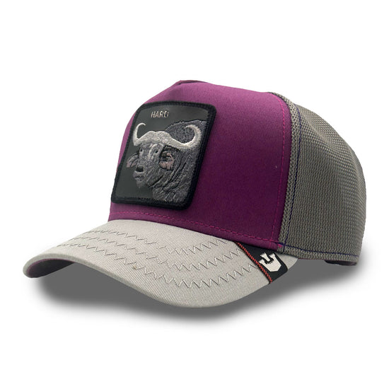 Things are about to get really tough with the Goorin "Hard Buffalo" cap. The purple front panel and contrasting shades of grey give it a cool look. The water buffalo patch and the "HARD" lettering make this cap a real eye-catcher. Dare to be tough!