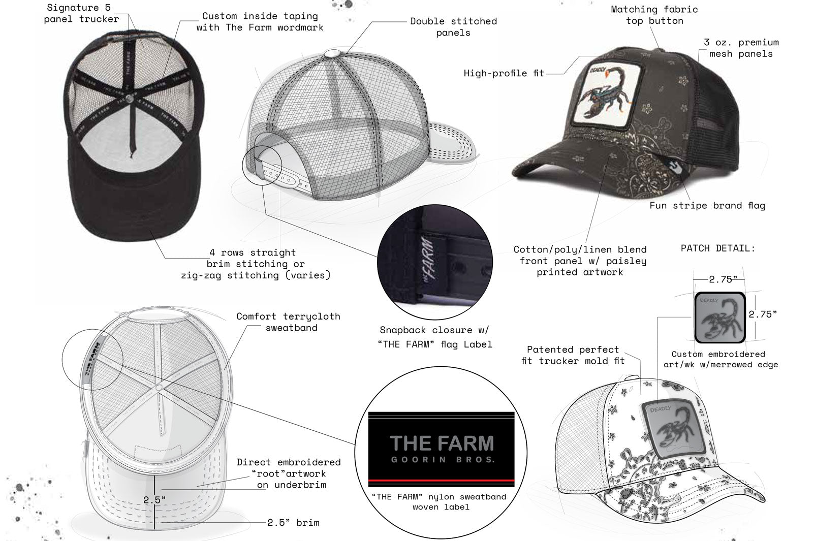 - 2.5" brim with direct embroidered "root" artwork on underbrim